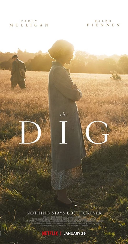 The Dig is a fictional adaptation of a novel that was inspired by the true story of the 1939 excavation at the ancient burial site called Sutton Hoo. It tells the story of Edith Pretty, played by Carey Mulligan. She is a widowed landowner who hires Basil Brown, a local archeologist, played by Ralph Fiennes, to excavate a series of mounds on her property. She is sure there’s something under one in particular. He is skeptical, but eventually begins to dig and uncovers an extraordinary find that draws the attention of the whole of England on the eve of World War II.
